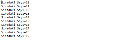 Bu durumda başlangıç değerimiz 10, bitiş değerimiz de 20 oldu. Artış değerini de 1 vereceğiz.