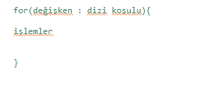 Bu döngüyü daha çok dizilerle işlemler yapacağımız zaman kullanıyoruz.