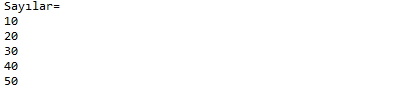 - 1.adımda sayılar adını verdiğimiz dizimize 5 adet sayı atamış olduk.
