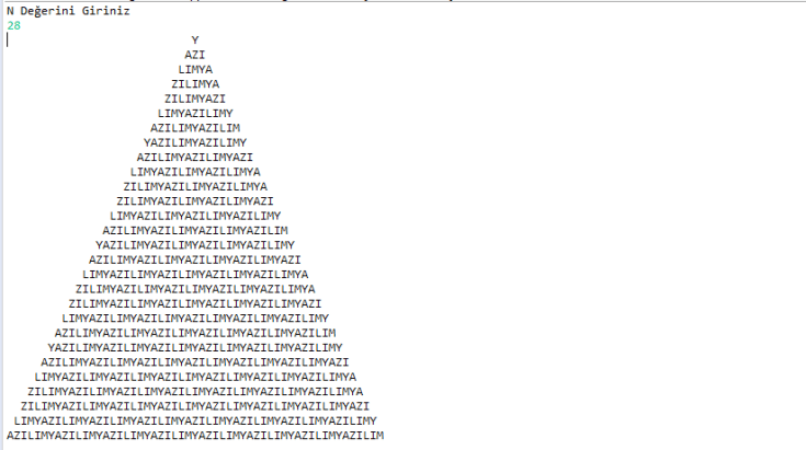 Ağacı bu şekilde oluşturduk. Siz de istediğiniz bir ismi bu kodlarla üçgen hale getirebilirsiniz.