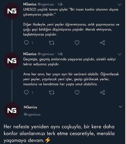 Biraz ironik olacak ama meğer ben yaşlıymışım. Derinine iniyorum konunun. Ve ne kadar haklı olduğunu görüyorum. Çünkü son 2 aydır bakıyorum ki konfor alanımdan çıkamamışım. Yapmak istediklerim hemen çemberimin dışında ama 2 adım yürümek bana zor gelmiş, bahanelere sığınmışım. 1 saatte bitirebileceğim o görevi 1 saatte bitirememiş, 2 saatlik işimin yanına koymuşum ve 3 saatlik iş beni yormuş. Kendime vakit ayıramamışım. Zamanında yapamadığım her iş sırtıma yük olmuş ve ben çemberime hapsolmuşum. Yapmak istediğim her şey bir anda yapmak istemediklerime dönüşmüş ve ben zamanla farklı bir ben’e dönüşmüşüm. Olmak istemediğim bir ben’e. Bir zamanlar çok eleştirdiğim O’nlara karışmışım.