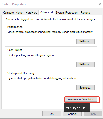 - Açılan ekranda gelişmiş ayarları tıklıyoruz.