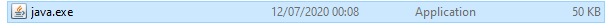 - Açılan dosyada java.exe dosyasına basıp sağa tıklıyoruz.